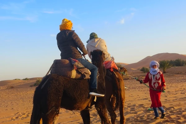 Ammira l’alba sulle dune. Attività opzionali: gite in cammello, sandboarding, visita ai villaggi berberi. Pernottamento nel deserto.