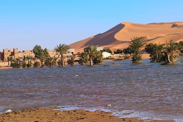 Proseguimento verso sud attraverso la Valle dello Ziz e Erfoud. Arrivo a Merzouga e trasferimento al campo tendato nel deserto in cammello o 4x4. Cena e pernottamento sotto le stelle.